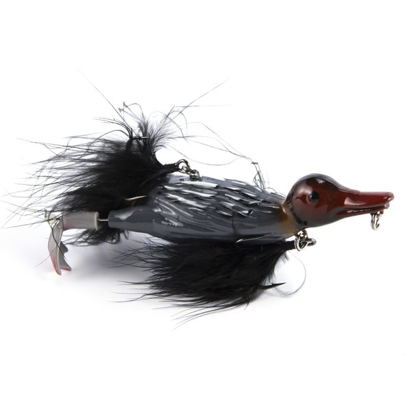 - The feather hooks add a gliding swimming action to make this lure exactly like a swimming duck from under water. The feather also hides the hooks to increase bite rate.