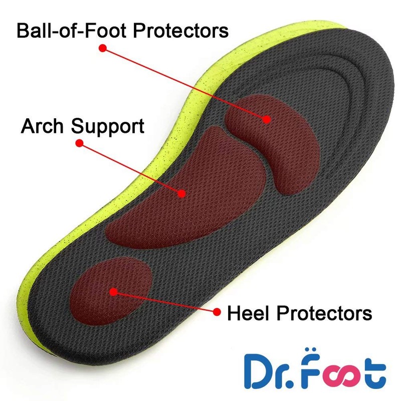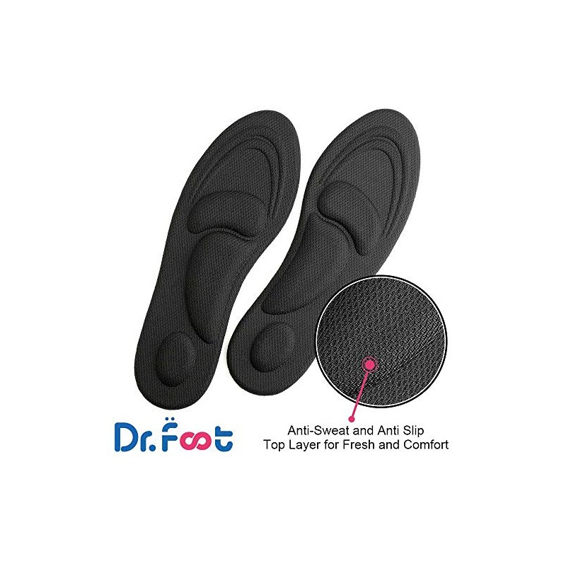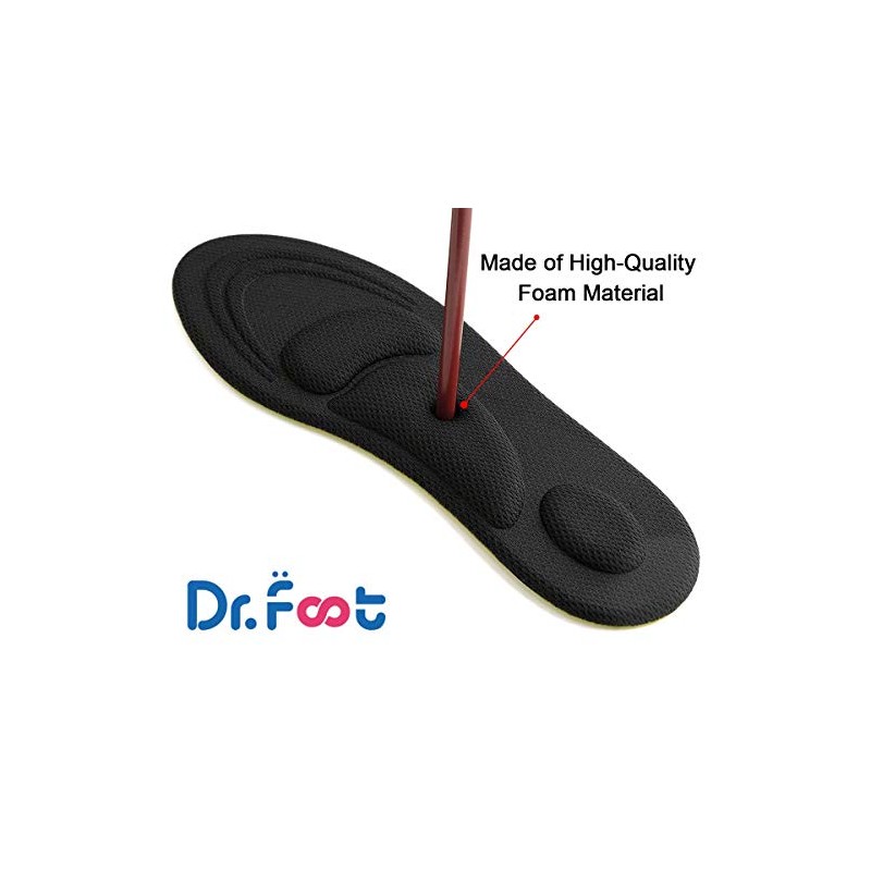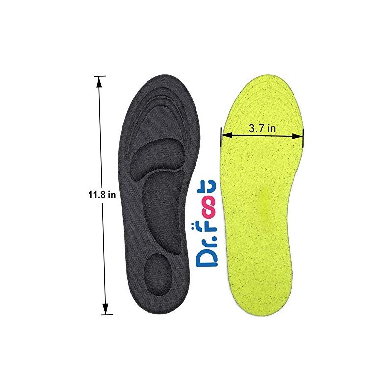 Dr. Foot's Arch Support Insoles, Help Against Plantar Fasciitis, Metatarsal and Heel Pain, Diabetic Anti-Sweat Foam Comfortable Insoles for Shock Absorption (L | 7~12 US Men's, Black)