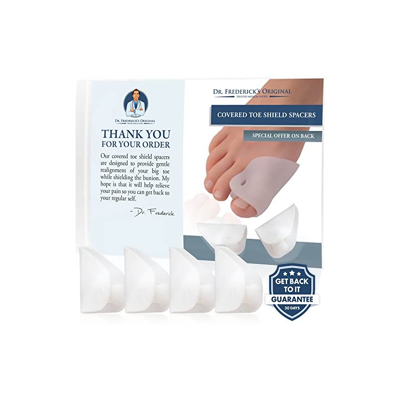 - TAKE A STEP TOWARDS LESS PAIN: Our covered gel toe separators provide realignment of your big toes while protecting and cushioning bunions. Splint, space, pad, protect, cushion, support, shield, and correct toe alignment, all with one set of Dr. Frederick's Original toe pads.