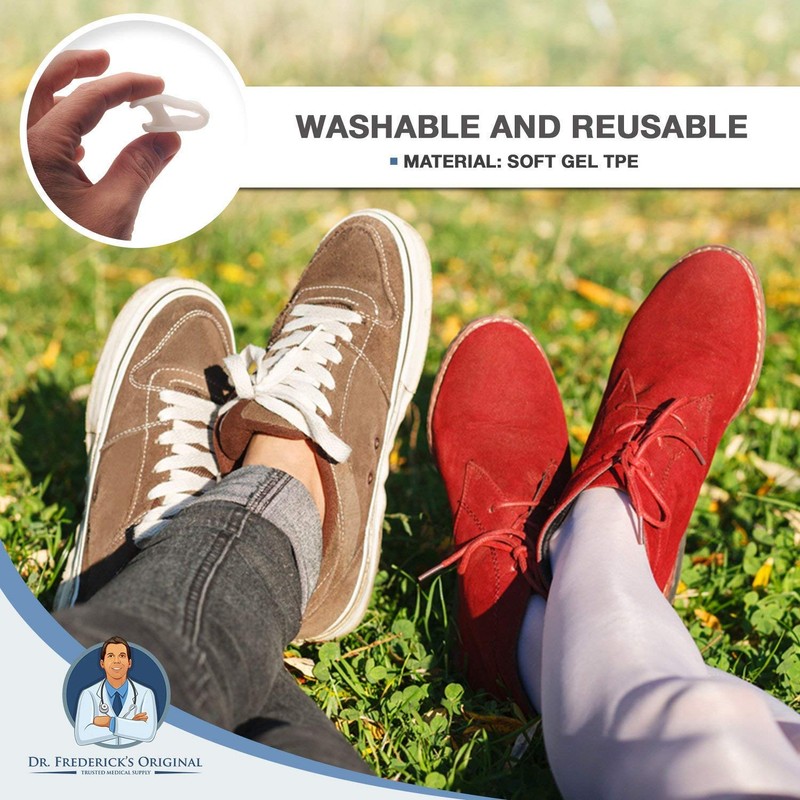 - SET OF 4 COVERED TOE SPACERS: Get a total of 4 Dr. Frederick’s Original soft, gel toe spacers that will provide padding and protection from toe overlap and help relieve pain from bunions.