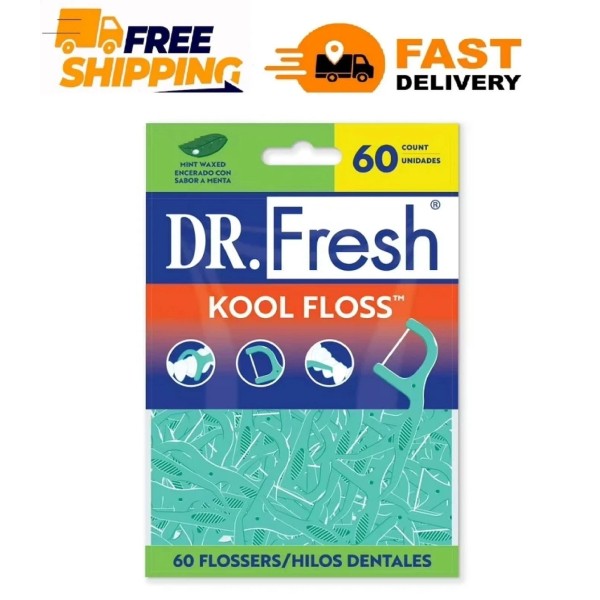 Dr. Fresh Kool Floss Waxed Dental Floss Picks in Easy Resealable Packaging, Mint