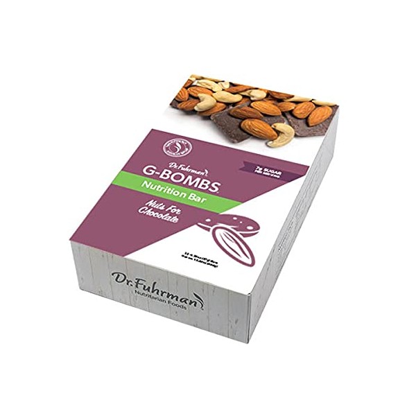 Dr. Fuhrman G-BOMBS Nutrition Bar, Nuts for Chocolate, Plant Based Protein, Organic Fruits, Vegetables, Nuts and Seeds – No Added Sugar, Sweetened Only With Real Fruit, 12 Pack