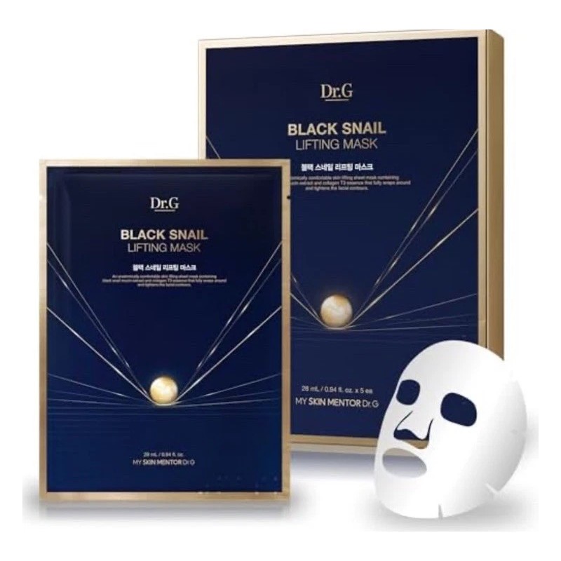 Dr.G Black Snail Lifting Mask, Snail Mucin & Collagen Korean Skincare - 5 Masks.