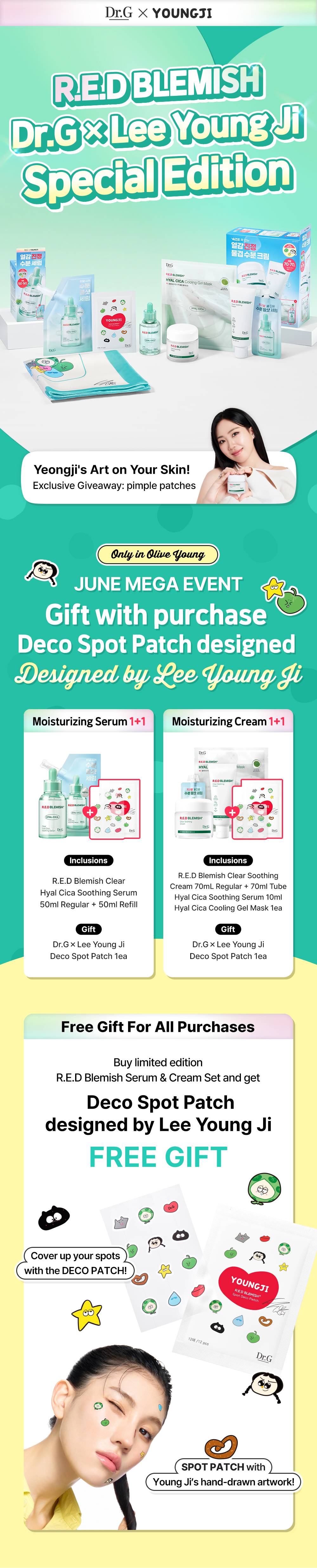 Dr.G Red Blemish Clear Soothing Cream 70ml 1+1 Set (+Tube 70ml+Serum 10ml+Gel Mask Sheet 1ea+Spot Deco Patch) - [SET][Limited] Cream 70ml 1+1 Set (+Tube 70ml+Serum 10ml+Gel Mask Sheet 1ea+Spot Deco Patch)