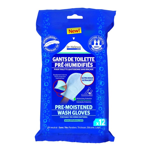 - Super soft and moist gloves for daily toilet without rinsing, on both sides with a cleansing lotion, moisturising and protective; hypoallergenic and dermatologically tested.