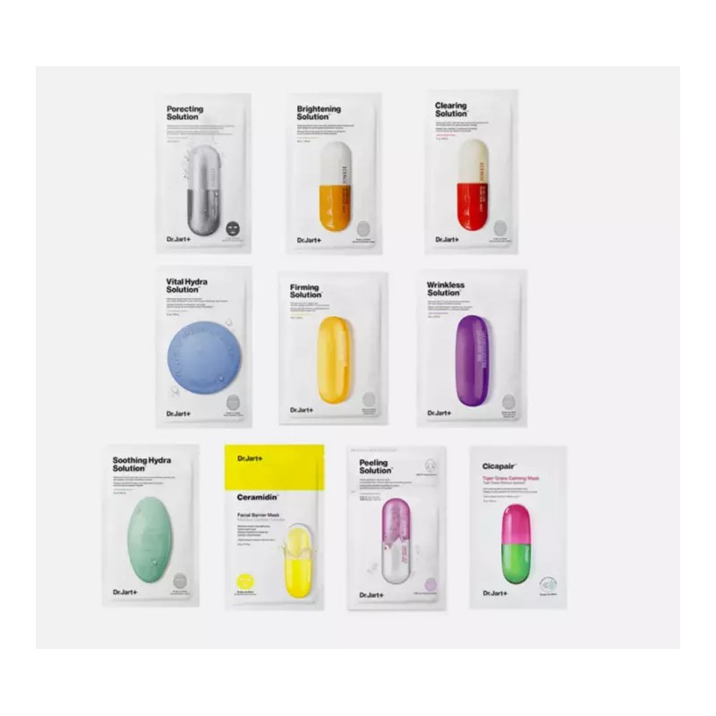 Dr. Jart Mask Sheet Set 7 Pcs Random(Brightening, Ceramidin, Clearing, Firming, Peeling, Porecting, Soothing, Tiger Calming, Vital Hydra, Wrinkle, V7 Brightening Mask)