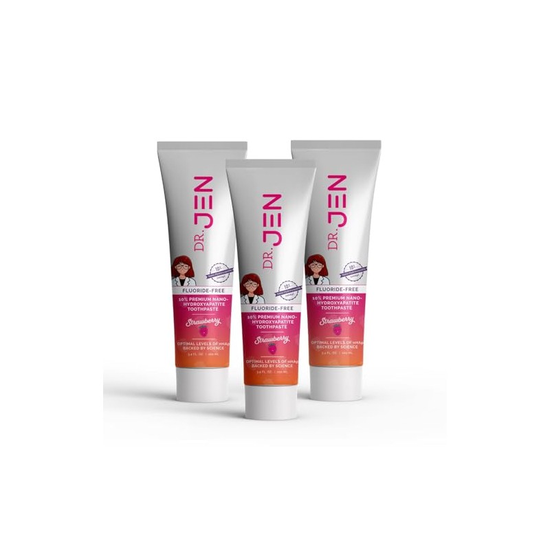 Dr. Jen's 10% Nano Hydroxyapatite Toothpaste - Fluoride Free, Xylitol Toothpaste (3.4 Ounce, Pack of 3)