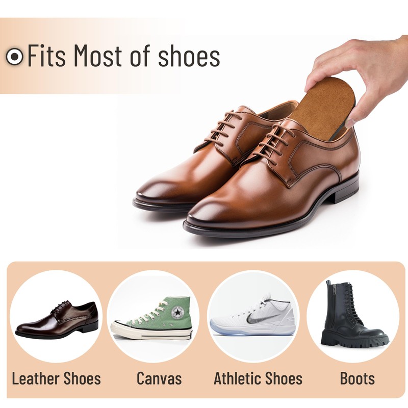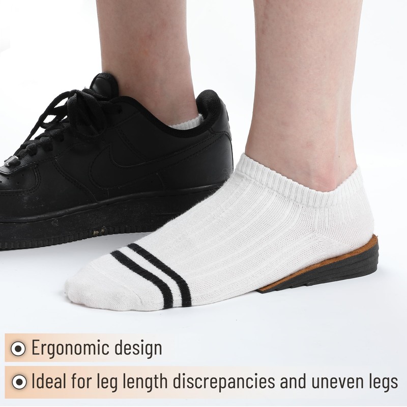 - These large-sized, brown shoe lifts fit discreetly inside most footwear, delivering subtle yet effective support for uneven legs.