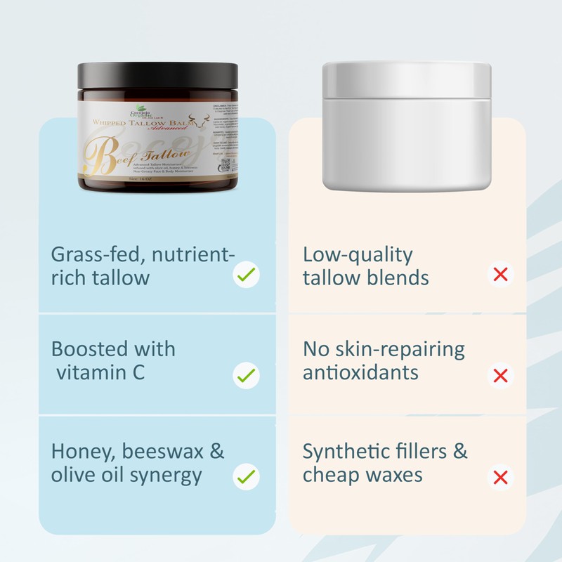 - Micronized Whipped Tallow – Made with micronized grass-fed beef tallow, this balm absorbs quickly to deeply hydrate and repair skin.