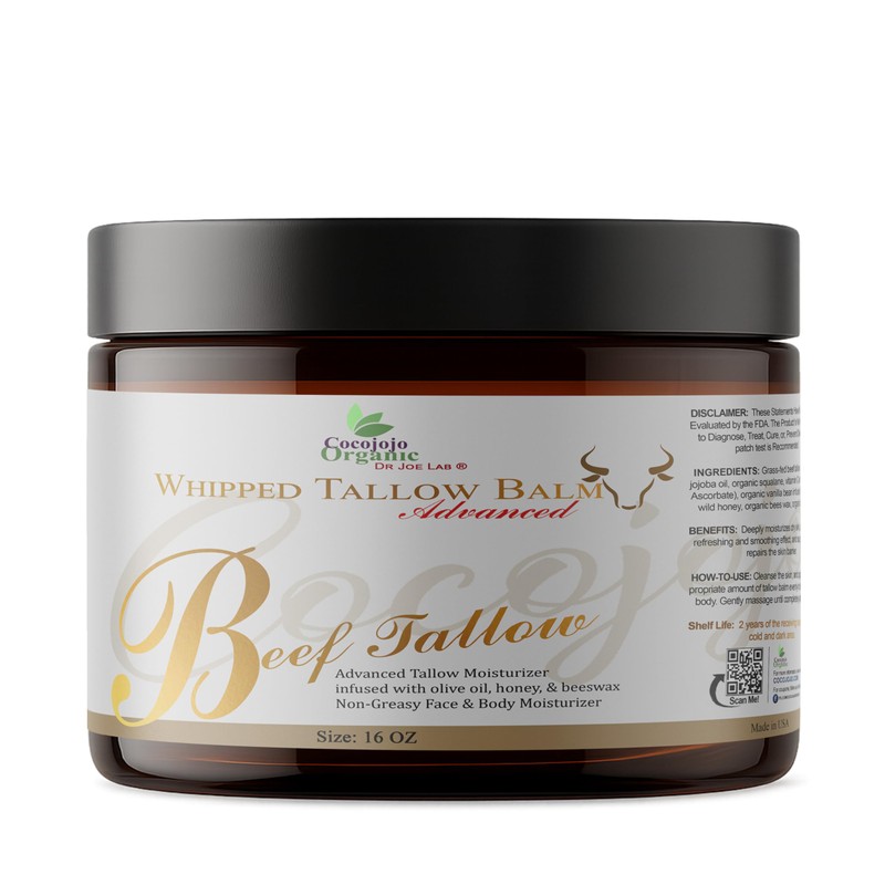 Dr Joe Lab COCOJOJO Whipped Tallow Balm Advance – Micronized Grass-Fed Tallow Moisturizer with Jojoba, Argan, Shea Butter, Baobab & Vitamin C – Whipped Tallow Cream for Face & Body Hydration (16 oz)