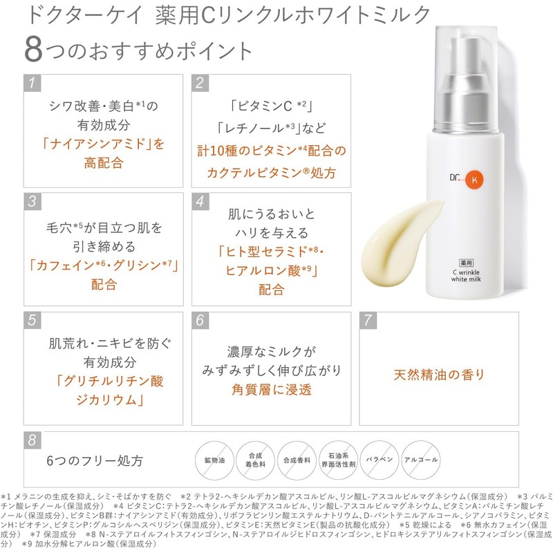Dr. K, Medicated C Wrinkle White Milk,Emulsion with Vitamin C, Niacinamide, Retinol – Brightening and Wrinkle Improvement,2.37oz