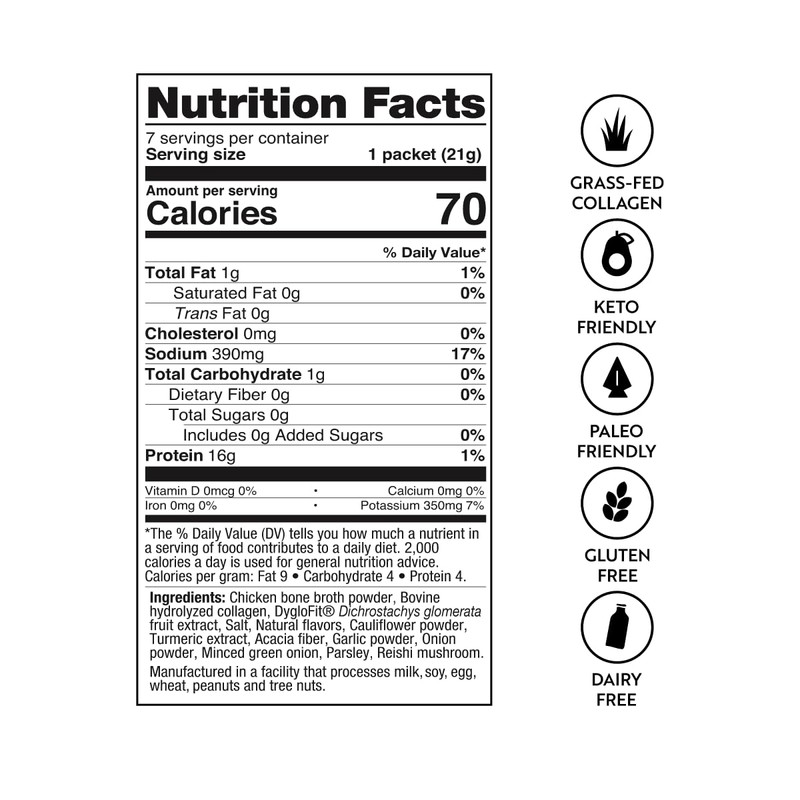 Fast-track your health goals with Dr. Kellyanns Fast Track Bone Broth Packets. Each convenient packet delivers 16g of grass-fed hydrolyzed collagen, designed to fuel your body with protein and amino acids for optimal wellness. This keto- and paleo-friendly formula is perfect for busy lifestyles, providing gut-healing nutrients and skin-enhancing benefits in every sip. Crafted by Dr. Kellyann Petrucci, this bone broth is a delicious way to stay on track, whether youre at home or on the go. Add hot water, stir, and enjoy a rich, savory boost to your day.