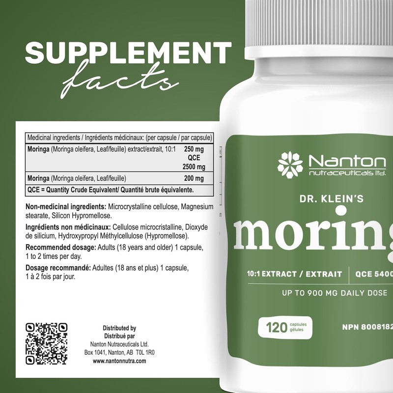 Dr. Klein's Moringa Leaf Extract Capsules – 10:1 Extract Equivalent to 5400mg | Supports Energy & Healthy Aging | Antioxidant Source | Gluten, Dairy & Soy Free | Vegan | 120 Capsules