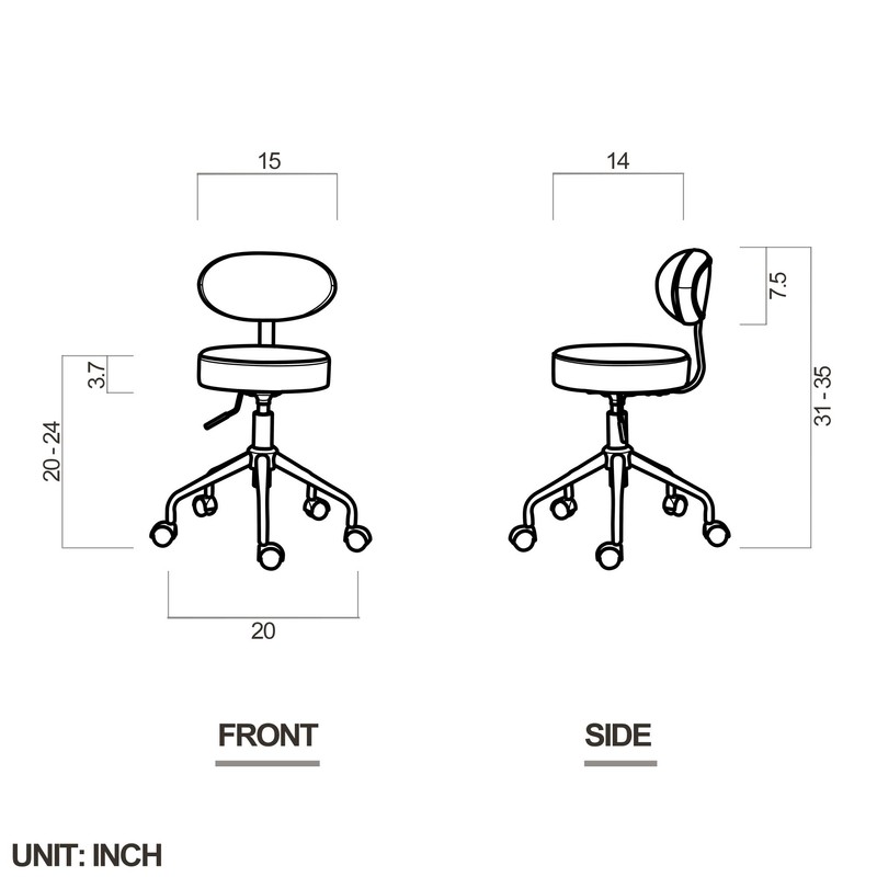 Standard swivel rolling stool with back rest for the clinic, nursing, massage, spa, salon, and home use. Designed in California, DR.LOMILOMI Exclusive.