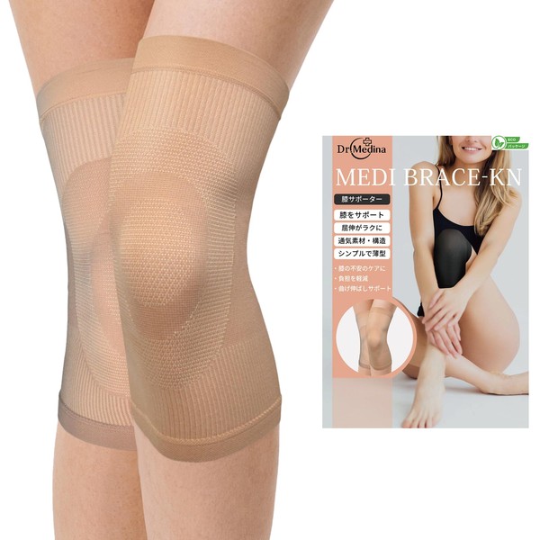 Dr.Medina (ドクターメディナ) 膝サポーター 2枚入り 膝 サポーター ひざ 女性 女性用 左右兼用 薄型 薄手 ひざサポーター 膝用サポーター ベージュ ブラック レディース MEDI BRACE-KN (L, ベージュ 2枚入り)