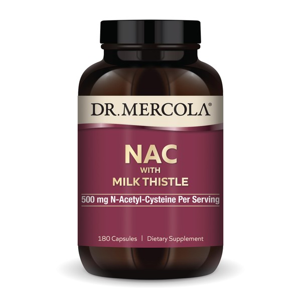 Dr. Mercola NAC with Milk Thistle, 90 Servings (180 Capsules), 500 mg N-Acetyl-Cysteine Per Serving, Dietary Supplement, Supports Normal Detoxification Processes, Non-GMO