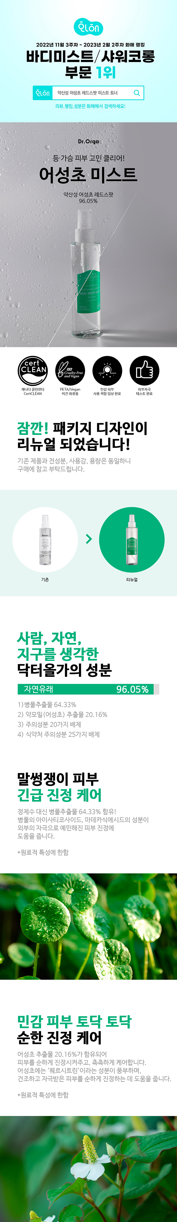 닥터올가 약산성 어성초 레드스팟 여 드 름 등드름 미스트 150ml