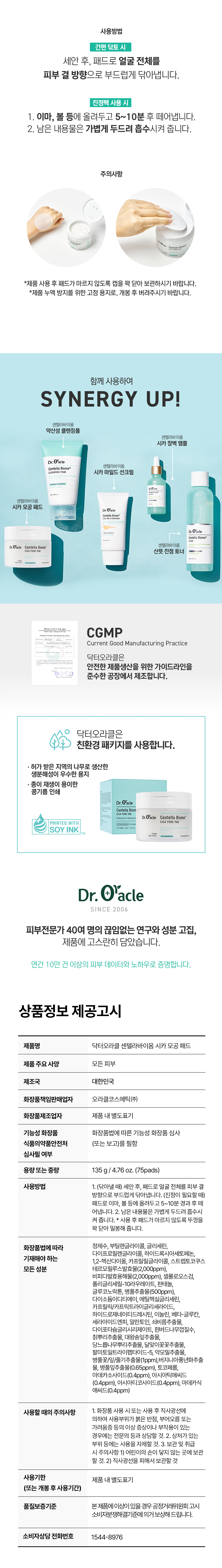 Dr. Oracle 닥터오라클 센텔라바이옴 시카 패드 135g(75매) Dr. Oracle Centella Biome Cica Pad 135g (75 sheets)