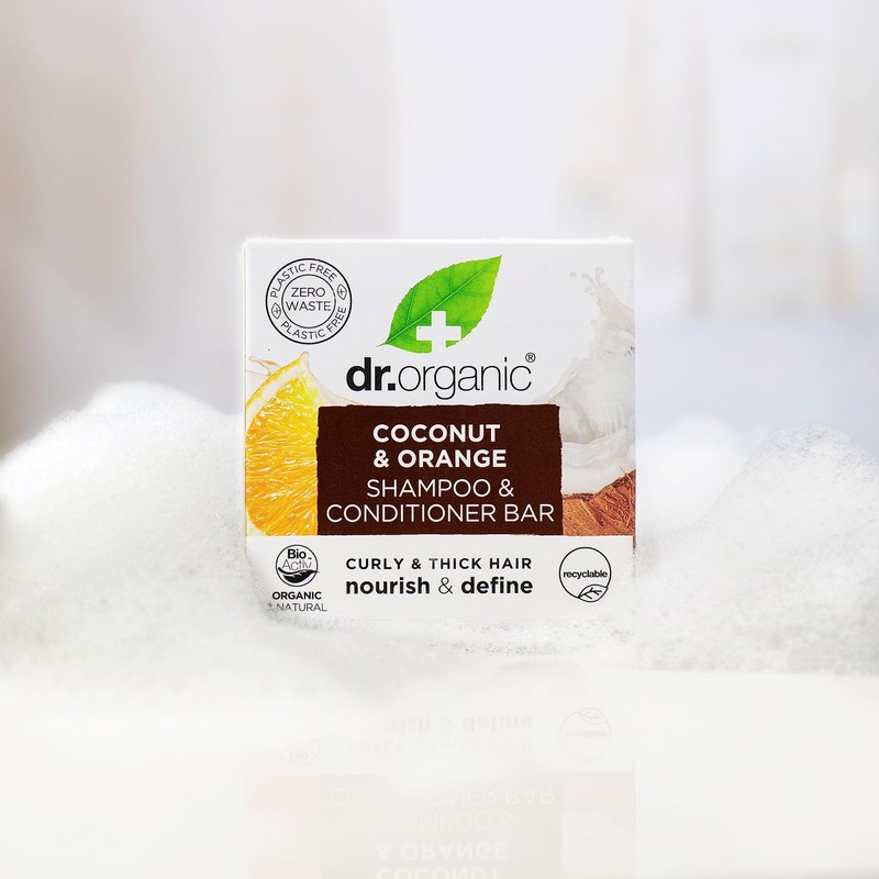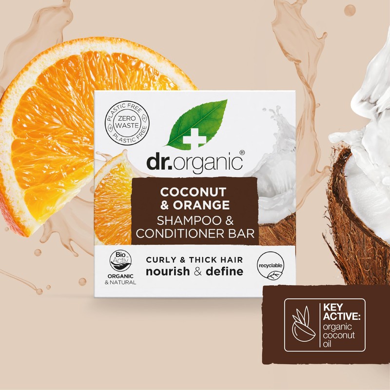 Dr Organic Coconut & Orange Shampoo & Conditioner Bar, Nourishing, Curly & Thick Hair, Plastic, Natural, Vegan, Cruelty Free, Paraben & SLS Free, Organic, 75 g