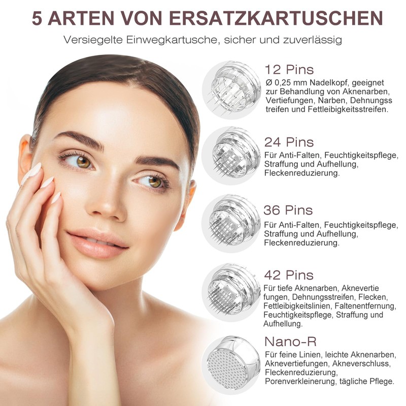 - *BENEFITS* --- 12 pins, suitable for treating acne scars, indentations, scars, stretch marks and obesity marks. The number of pins is medium, suitable for all types of surface treatments.