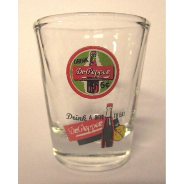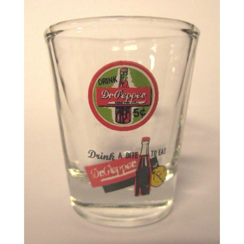 DR.PEPPER SODA "DRINK A BITE" 10-2-4 LOGO SHOT GLASS