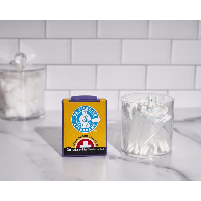 Dr. Piercing Aftercare Swabs – Piercing Bump Saline Solution for Cleansing Earring, Nose, Belly, and Ear Piercings – Gentle Saline Wash for a Refreshing Experience – 36 Easy-to-Use Swabs (1-Pack)