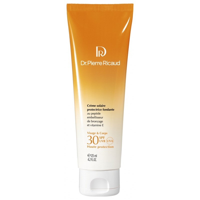 Dr Pierre Ricaud Protective Melting Sun Cream SPF30 125 ml is a high sun protection cream for face and body with a melting texture. This SPF30 cream protects skin from the sun, enhances tanning and prevents photoaging thanks to its formula enriched with :