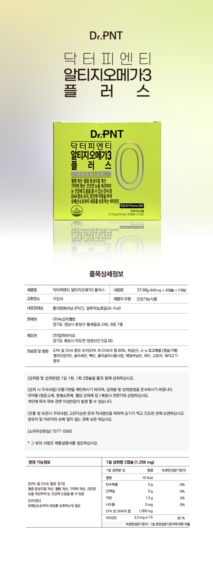 Dr. PNT RTZomega 3 Plus 60 capsules for hospital use only / 닥터피엔티 알티지오메가3 플러스 60캡슐 병원전용