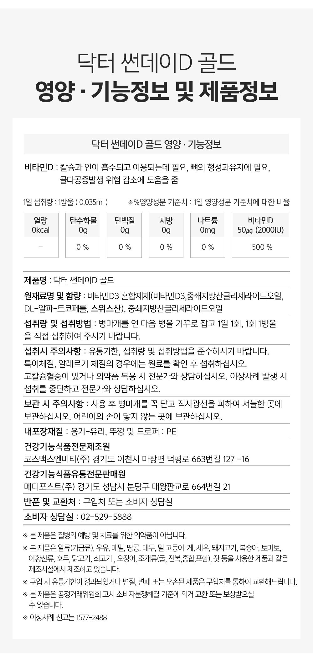 - 제품명: 비타민D 닥터썬데이D 2000IU 골드