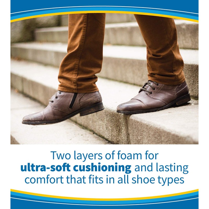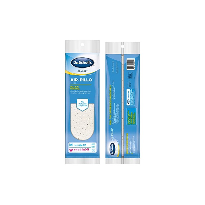 We designed Dr. Scholl’s Comfort Air-Pillo Insoles especially for people whose feet experience discomfort during the day. Two layers of foam deliver ultra- soft cushioning. Contains natural rubber latex. The package contains one pair of insoles that fits Men (sizes 7-13) and Women (sizes 5-10). Dr. Scholl's has been a trusted brand in foot care since 1904 when Dr. William Mathias Scholl, grandson of a cobbler, launched the company under the name Dr. Scholl Inc. Covered by the Bayer HealthCare LLC – Consumer Health 60-Day Satisfaction Guarantee. See below for details