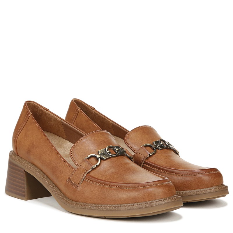 Dr. Scholl's Womens Rate Up Bit Slip On Block Heel Loafer Honey Brown Smooth 9.5 M