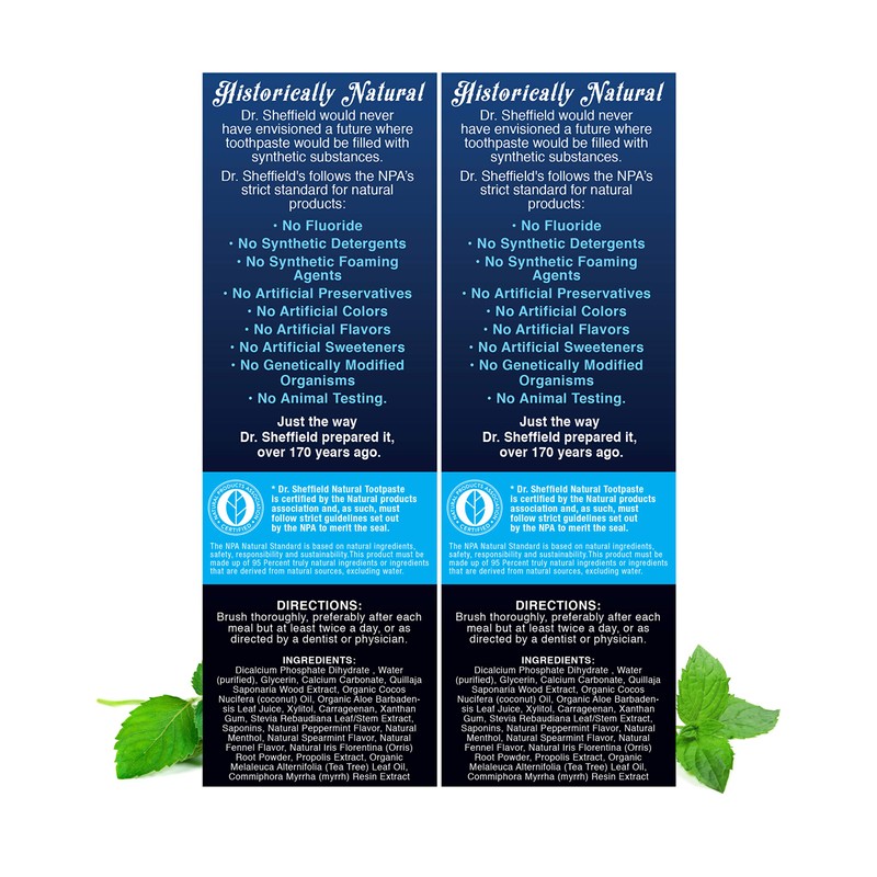 • THE ORIGINAL TOOTHPASTE: In 1850, Dr. Sheffield created a new tooth cleaning product called toothpaste, replacing the common tooth powders. Today, we continue his legacy by providing you a certified natural, great tasting toothpaste you can enjoy!