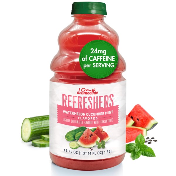 Dr. Smoothie Refreshers Watermelon Cucumber Mint – Made with Real Fruit Juice – Drink Concentrate, No Artificial Colors, Shelf-Stable – Lightly Caffeinated with Green Coffee Extract (46 oz Bottle)