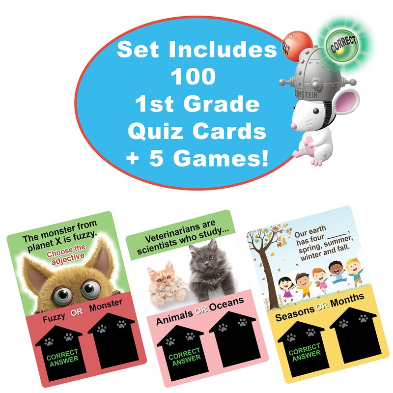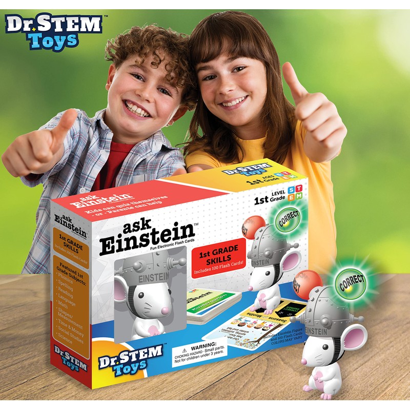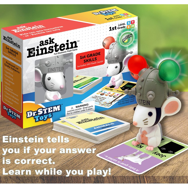 Dr. STEM Toys Ask Einstein Electronic Flash Cards - 1st Grade Skills - Set Includes One Hundred Flashcards and Electronic Interactive Mouse