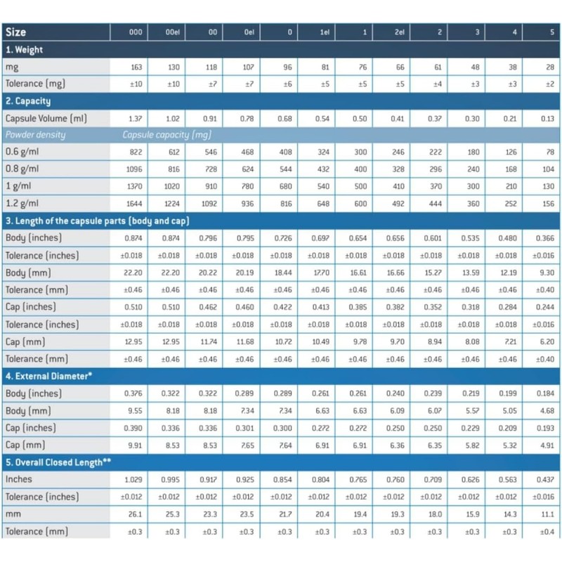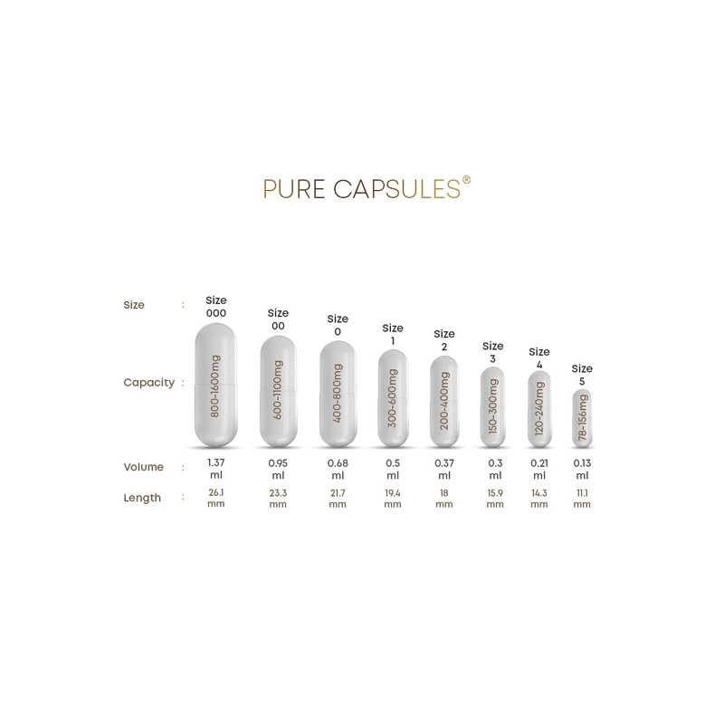 - Capsule size big to small : size 000>size00>size0>size1>size2>size3>size 4>size5