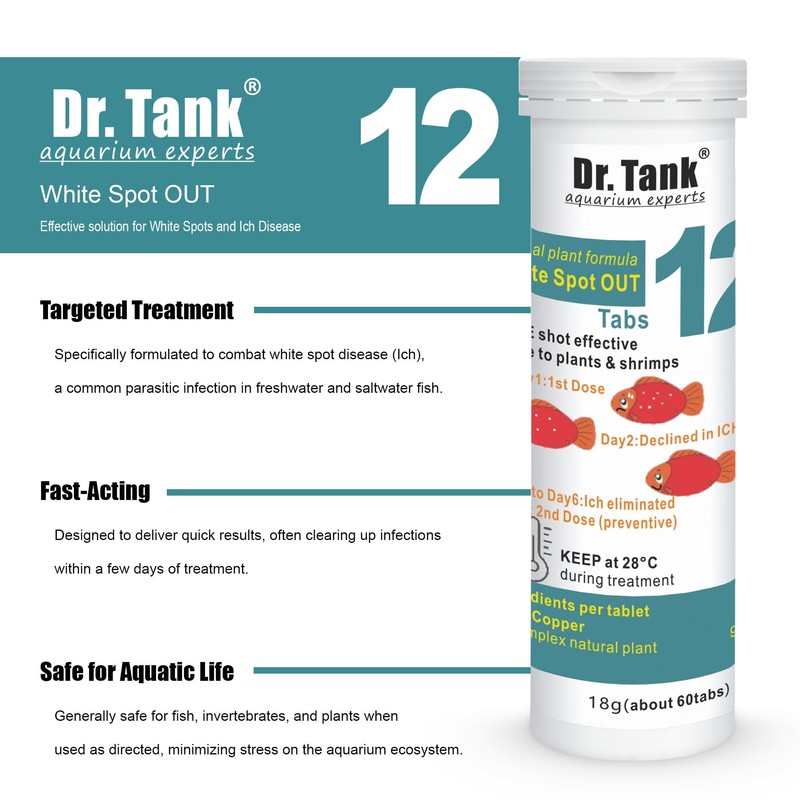 Dr. Tank #12 White Spot Out - Ich Treatment for Freshwater Fish - Eliminates Ick White Spot Disease - Safe for Aquatic Plants - 60 Tablets