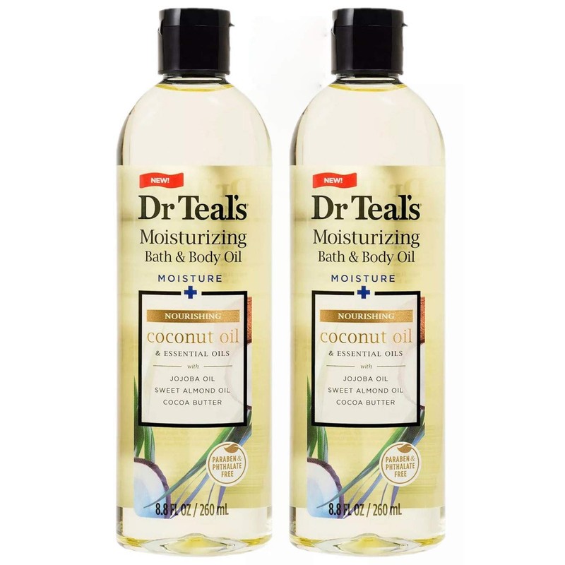 Dr Teal's Bath & Body Oil 2-Pack (17.6 fl oz Total) Moisturizing Coconut Oil & Essential Oils