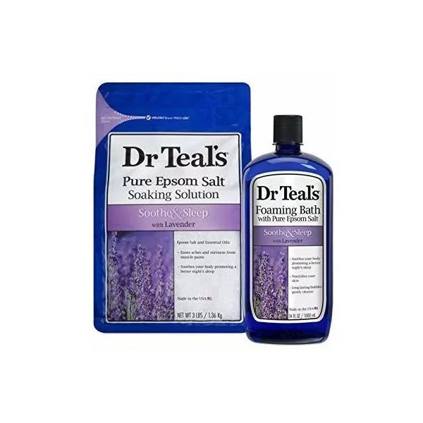 La sal de Epsom pura con aceites esenciales para calmar su cuerpo y relajar la mente .; Baño de espuma lujosa calma sus sentidos amd revitaliza cansados ¿¿músculos achey .; Aliviar los músculos doloridos con 2 tazas de sal de Epsom del Dr. Teal. Remojo durante 20 minutos 2 veces por semana mientras se vierte una cantidad generosa de la formación de espuma del Dr. trullo con agua corriente para una experiencia relajante baño de burbujas. del Dr. Teal sal de Epsom en remojo y Gel de Ducha convertir su baño en una experiencia de spa de lujo y relajante. La sal de Epsom y aceites esenciales revitalizar sus sentidos y aliviar los músculos doloridos cansados. Todos nuestros productos estan en inglés SKU 4091927849