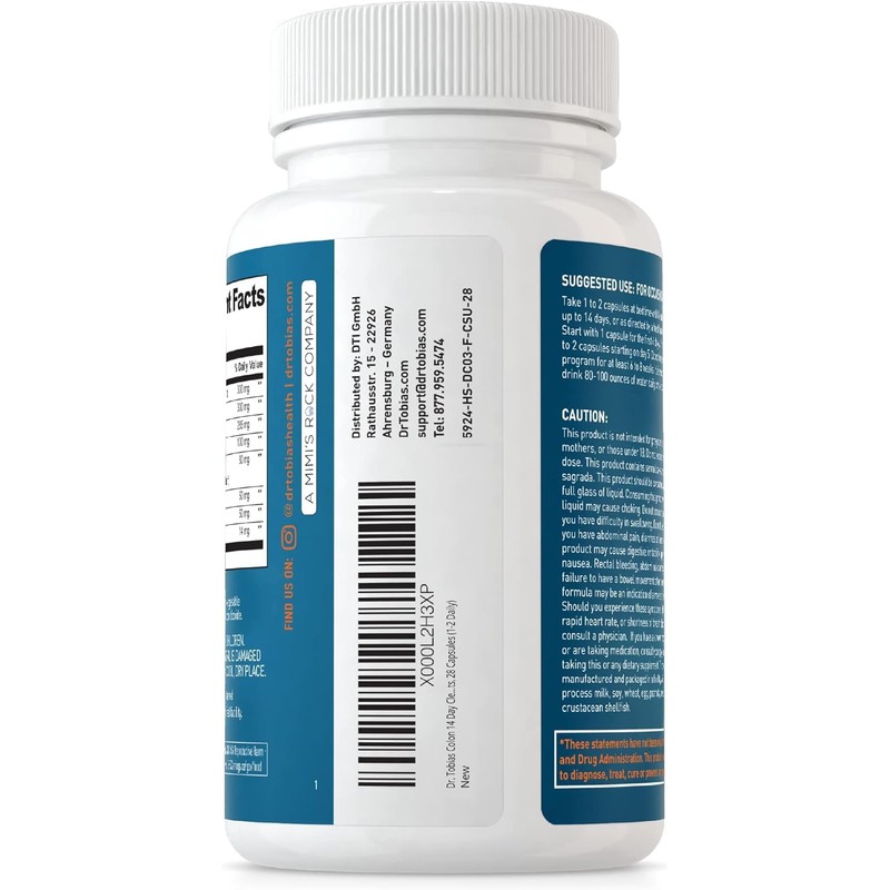 Dr. Tobias Colon 14 Day Cleanse, Advanced Gut Cleanse Detox for Women & Men with Cascara Sagrada, Psyllium Husk, Senna Leaf & Probiotics, Non-GMO Colon Cleanse, 1 Bottle of 28 Capsules (1-2 Daily)