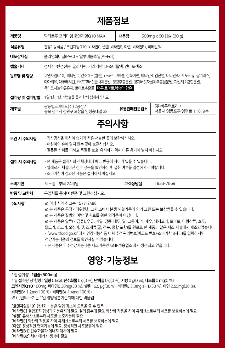 닥터트루 프리미엄 코엔자임Q10 MAX 코엔자임Q10 4+1개