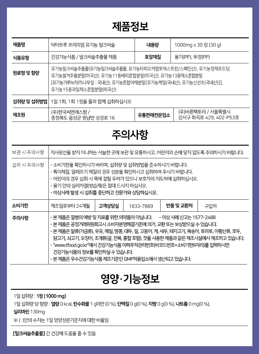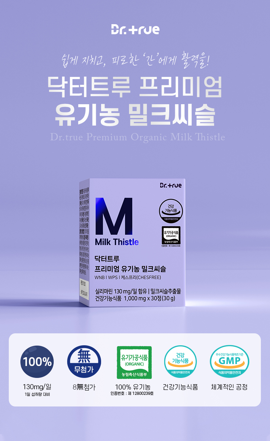 Dr.True Premium Organic Milk Thistle 4+1 / 닥터트루 프리미엄 유기농 밀크씨슬 4+1개