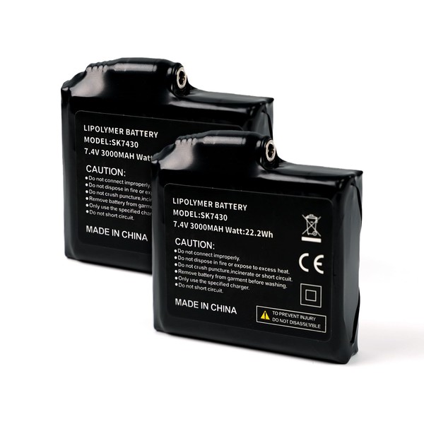 Dr.Warm 7.4V 3000MAH Rechargable Lipolymer Battery for Heated Gloves Heated Socks/ 2PCS