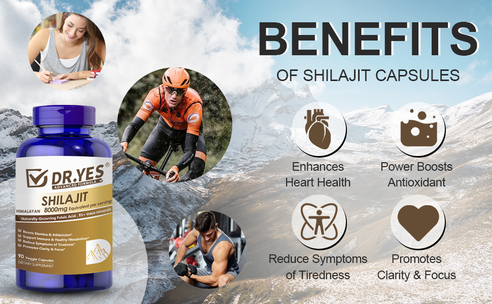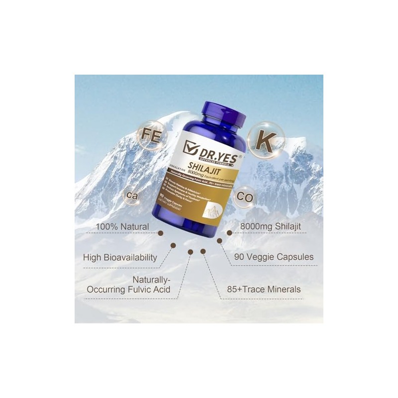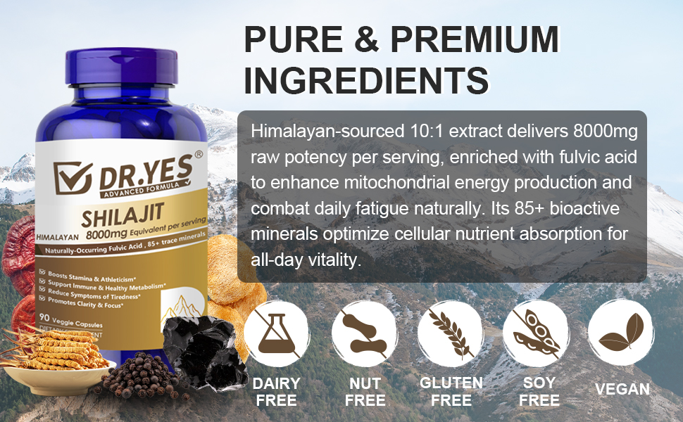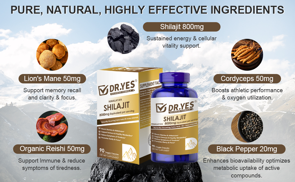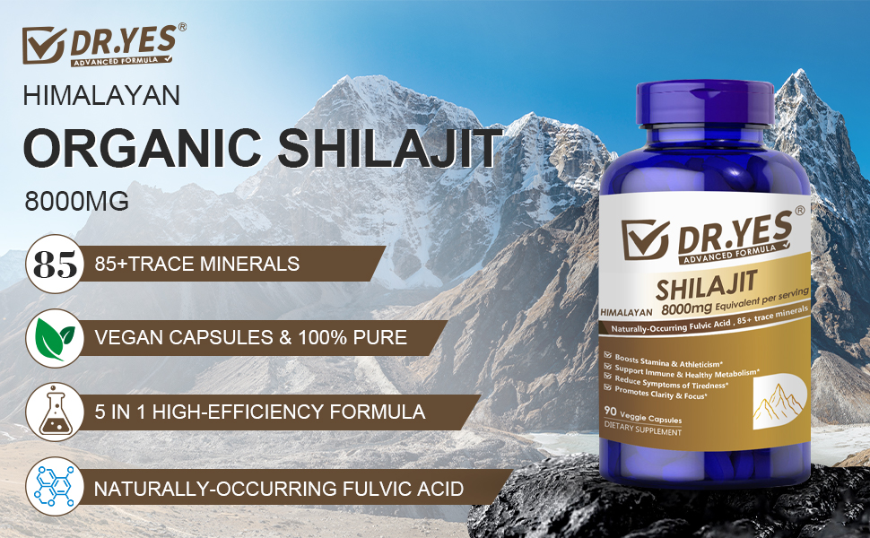 DR.YES Himalayan Shilajit Capsules with Naturally-Occurring Fulvic Acid & 85+ Trace Minerals for Men & Women, Support Energy, Brain Health, Immune & Metabolism, Vegan, Non-GMO, 90 Capsules