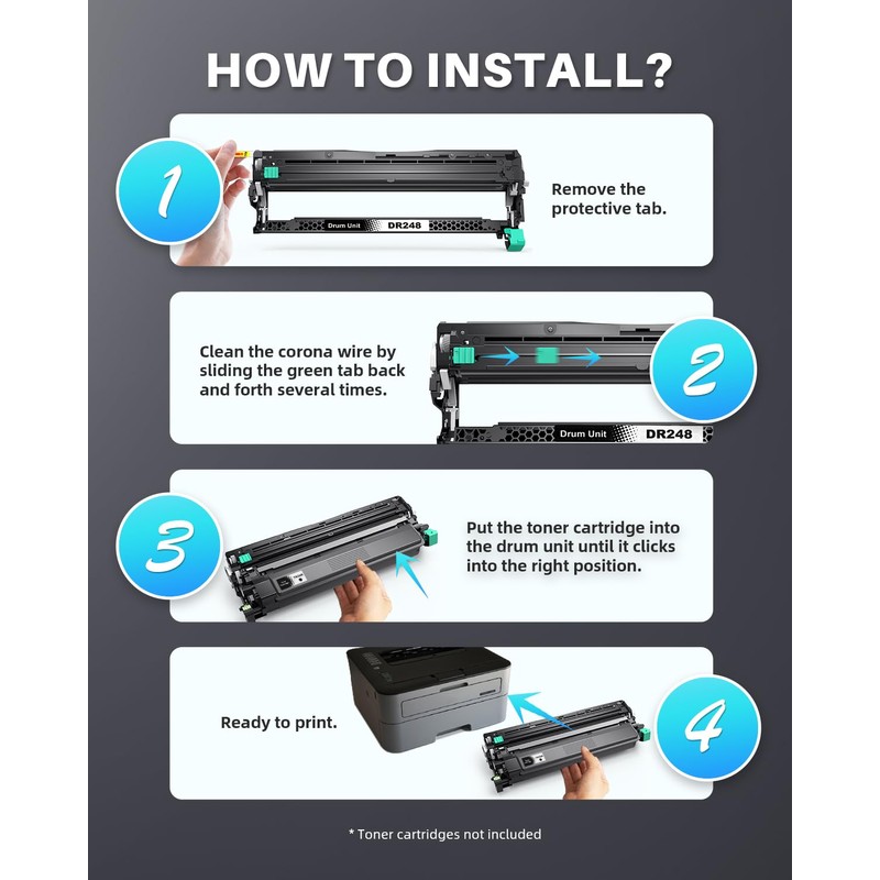 - Package Content: 1 x DR-248cl Drum Unit (Total 1 Pack, Toner Not Included) Please reset the counter of the Brother drum DR-248cl before printing