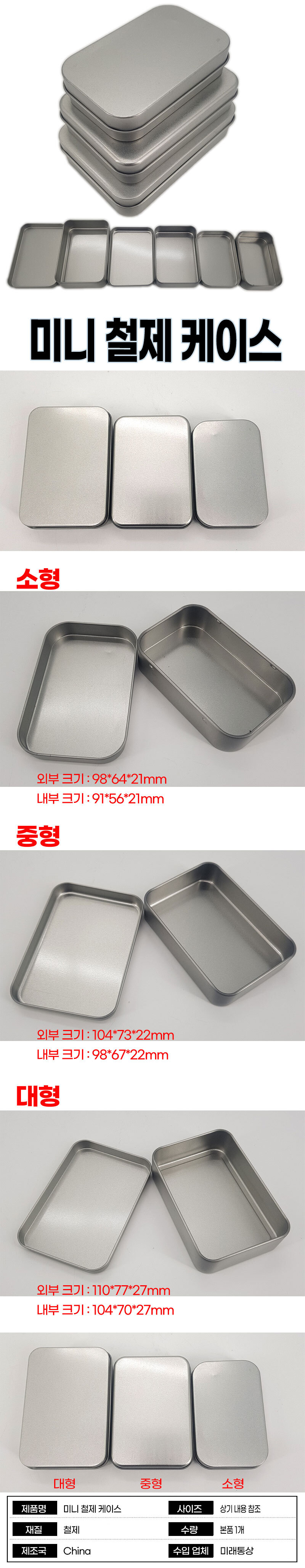 - Size: Small (External: 98x64x21mm, Internal: 91x56x21mm), Medium (External: 104x77x22mm, Internal: 98x67x22mm), Large (External: 110x77x27mm, Internal: 104x70x27mm)