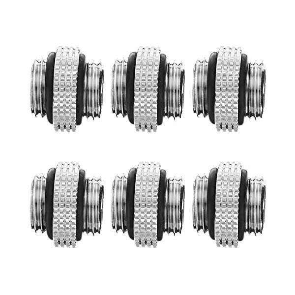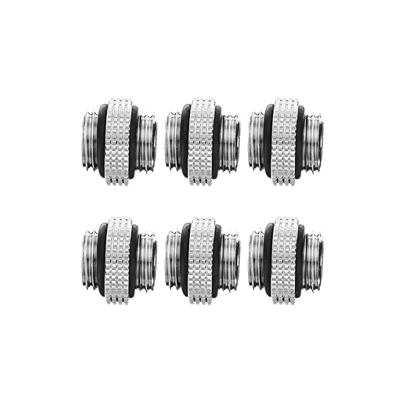 Dracaena 6 Pack G1/4" Thread, Male to Male Mini Extender Fitting with Tighten O-Ring, Compression Fitting for Computer Water Cooling System, Silver