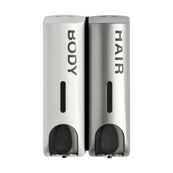Draco Duo Wall Mounted Shampoo Soap Shower Dispensers with 2x350ml Refillable Bottles,White/Silver