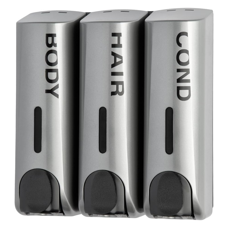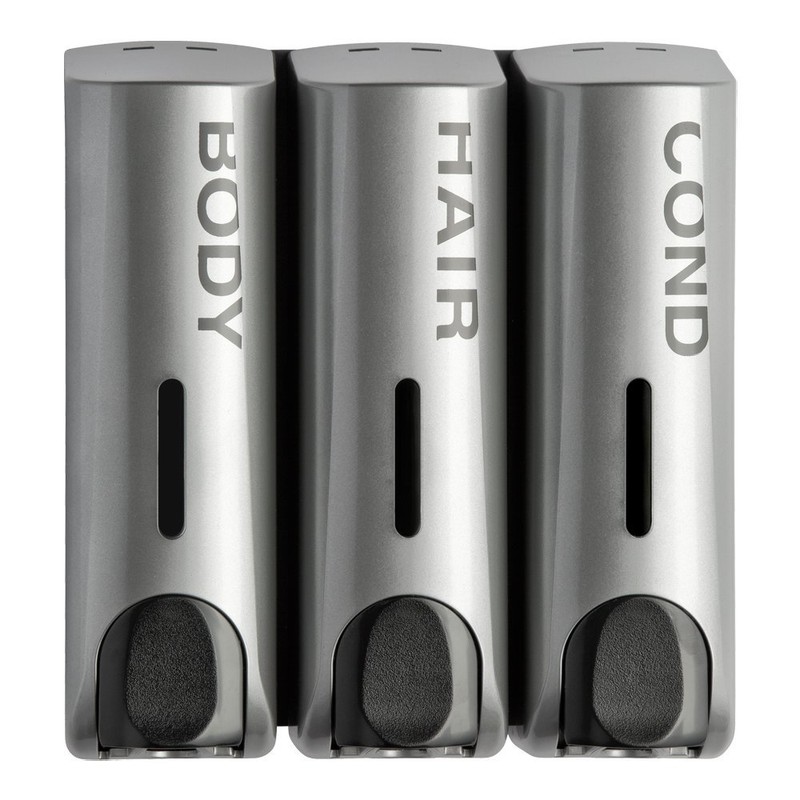 Trio Wall Mounted Shampoo Soap Shower Dispensers with 3x350ml Refillable Bottles,Silver