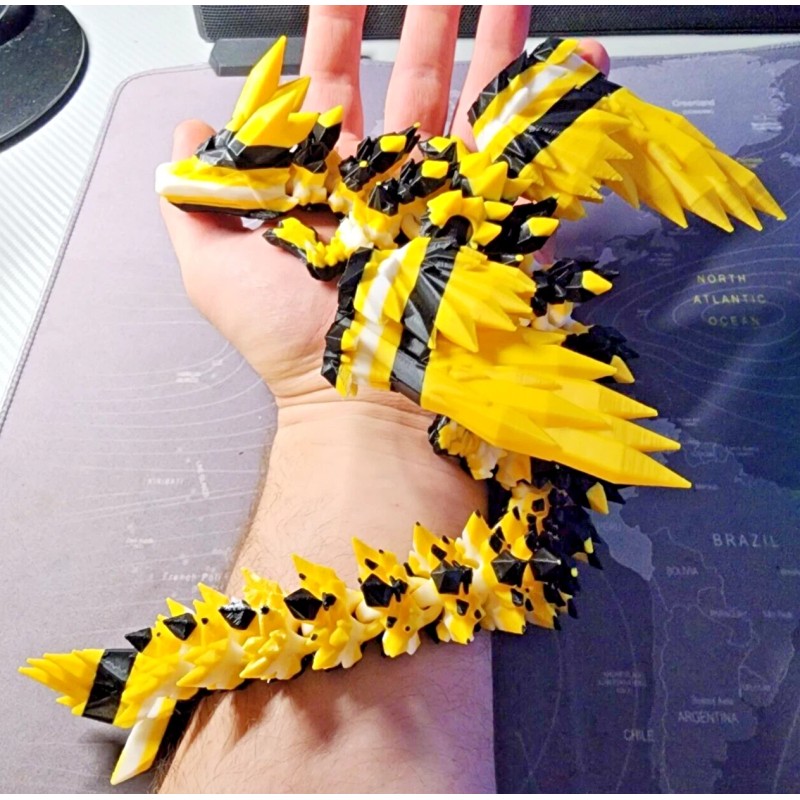 Dragon 3D Printed Articulated Crystal Winged Dragon Fidget Toy - Flexible Desktop Decor