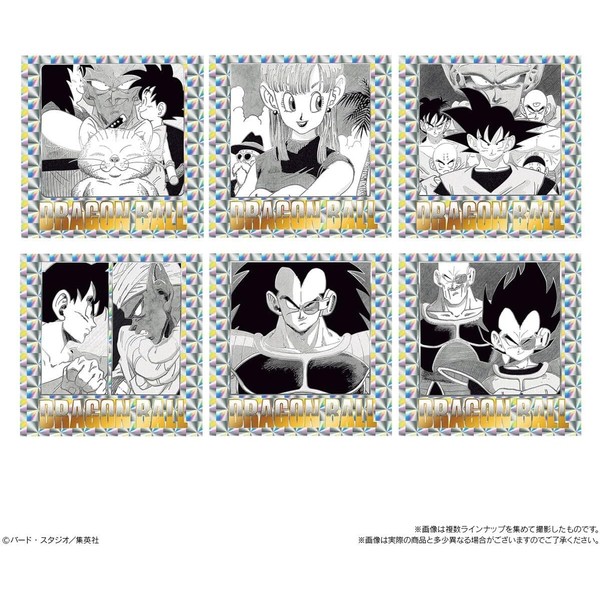 Randomly included from a total of 42 types. Introducing sticker wafers with original illustrations to commemorate the 40th anniversary of Dragon Ball! Commercialized frontispieces from the original comic books! Includes all 42 volumes of Dragon Ball in a lineup that will remind you of the story! All types are super luxurious with glittering holographic stickers and gold and silver double foil stamping.